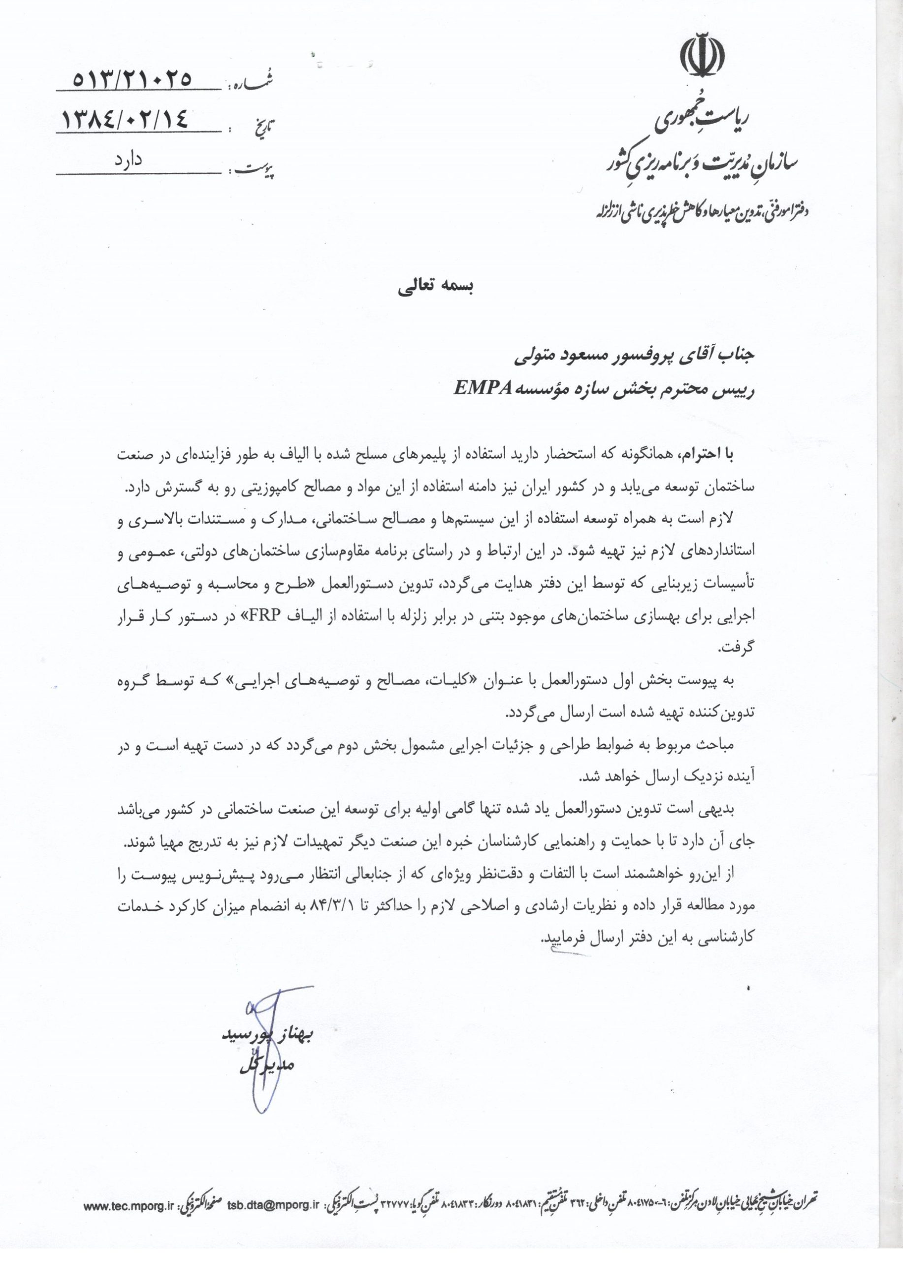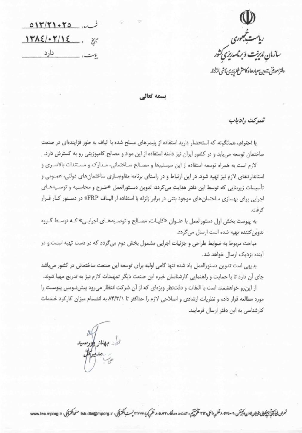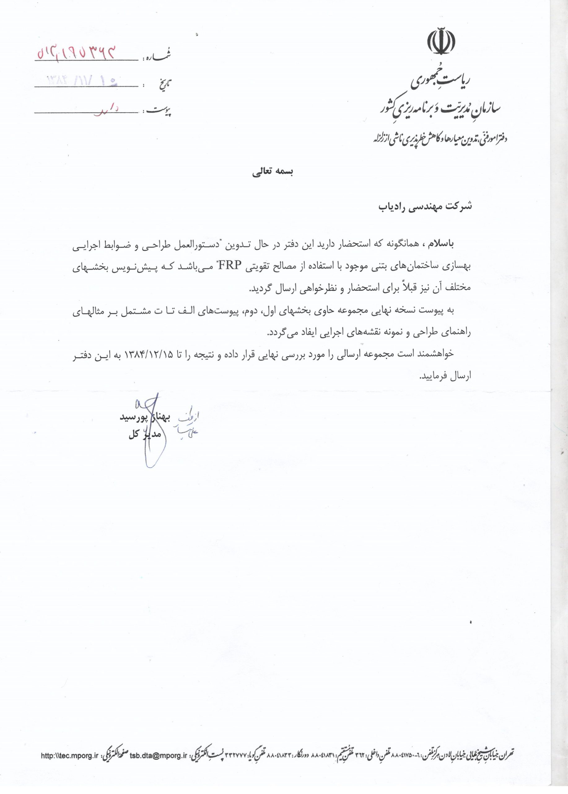 این شرکت دارای صلاحیت طرح و اجرای پروژه‌های مقاوم‌سازی (EPC) از سازمان مدیریت و برنامه‌ریزی کشور بوده و در تدوین نشریه ۳۴۵ (دستورالعمل مقاوم‌سازی با FRP) نیز مشارکت داشته است.