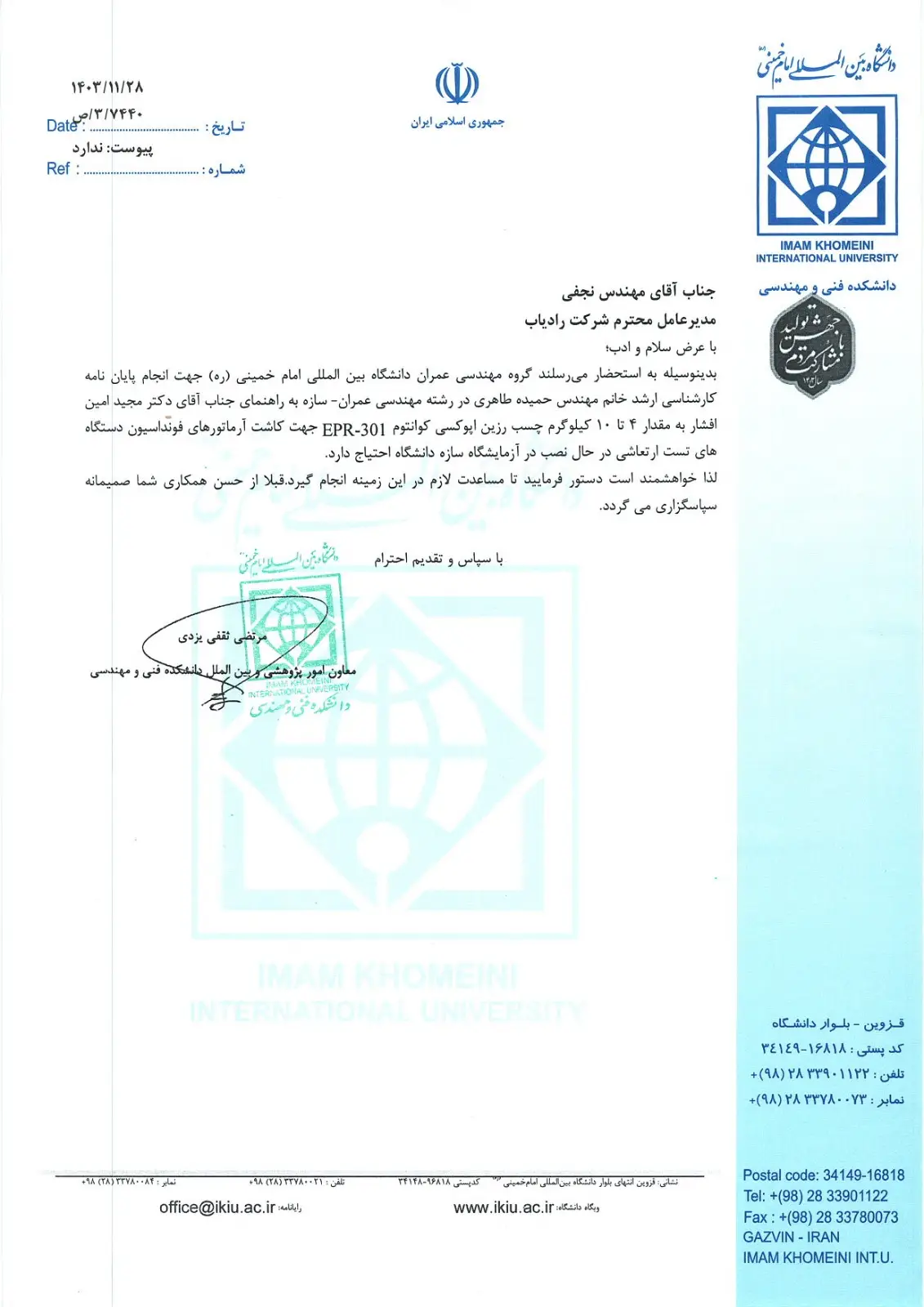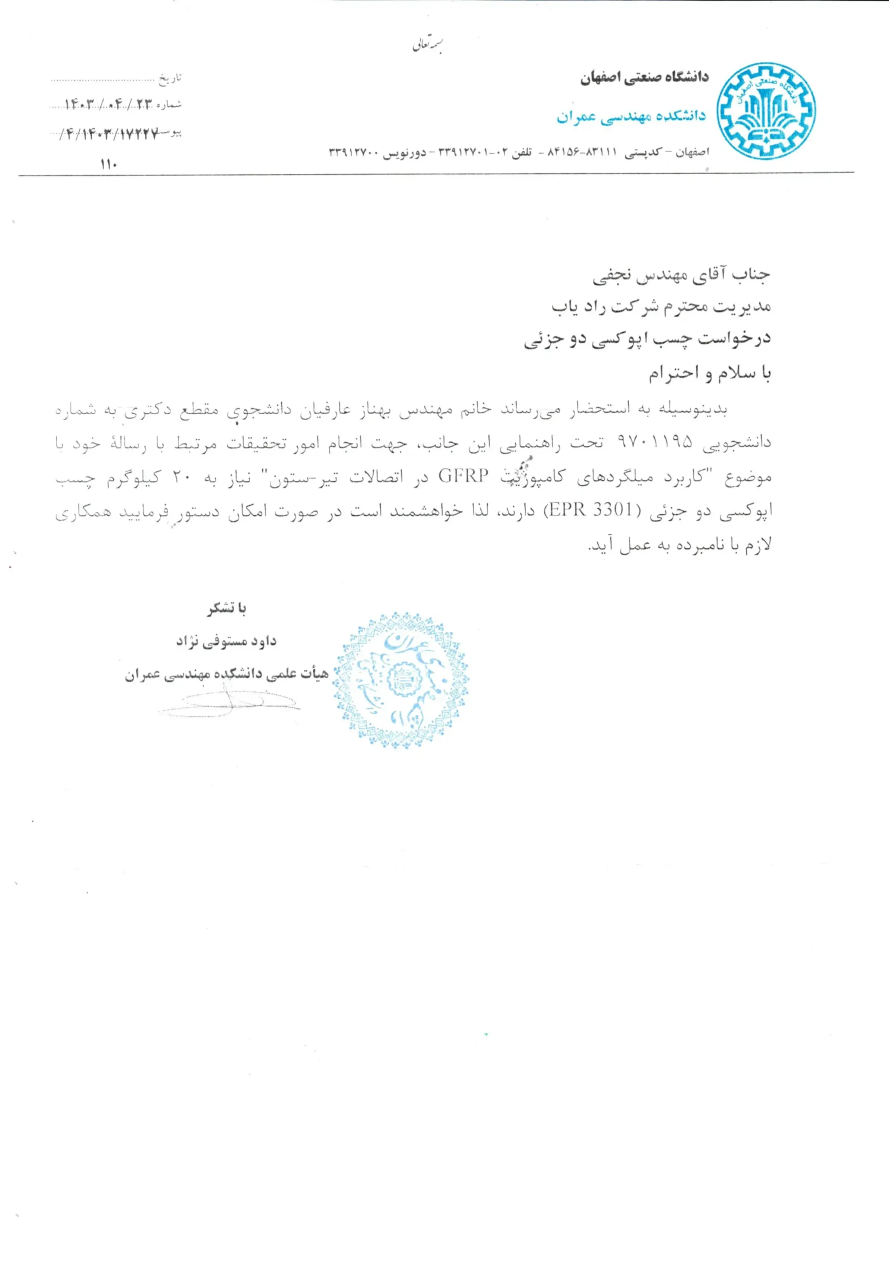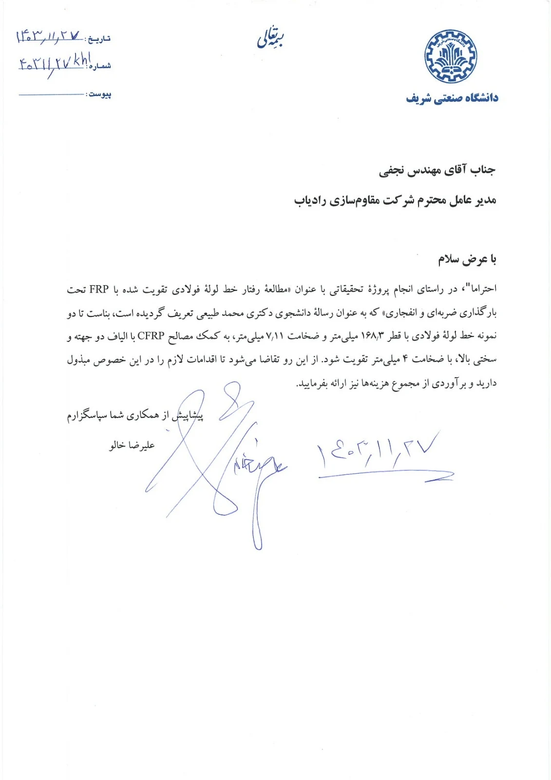 شرکت رادیاب با دانشگاههای مختلف کشور در پروژههای تحقیقاتی، پایاننامههای دانشجویی و طرحهای آزمایشگاهی مرتبط با مصالح FRP همکاری دارد. این همکاری شامل تأمین نمونههای FRP، ارائه اطلاعات فنی، مشارکت در انجام آزمایشها، و پشتیبانی از پژوهشهای مرتبط با رفتار سازهها و طراحی بهسازی لرزه ای است. ما تلاش می کنیم با تسهیل دسترسی دانشجویان و پژوهشگران به مصالح استاندارد و تجهیزات لازم، نقش مؤثری در توسعه پژوهشهای دانشگاهی و ارتقای سطح علمی کشور داشته باشیم. در ادامه نمونه هایی از همکاری با دانشگاه های کشور ارائه می گردد.