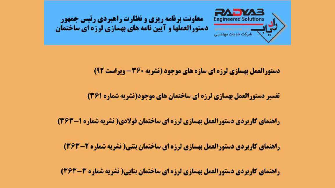 دستورالعملها و آیین نامه های بهسازی ساختمان های موجودAdminمارس 11, 2019دستورالعملها و آییننامههای بهسازی ساختمانهای موجود + راهنماهای کاربردی برای ساختمان فولادی، بتنی و بنایی به همراه فایل PDF. ... ادامه مطلب